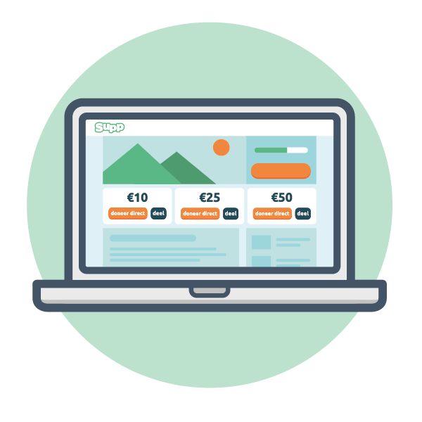 Deel de actie met vrienden, collega's en bekenden en laat mensen doneren op jouw actie. Bedenk creatieve acties om meer bekendheid te krijgen en laat anderen zich aansluiten.
